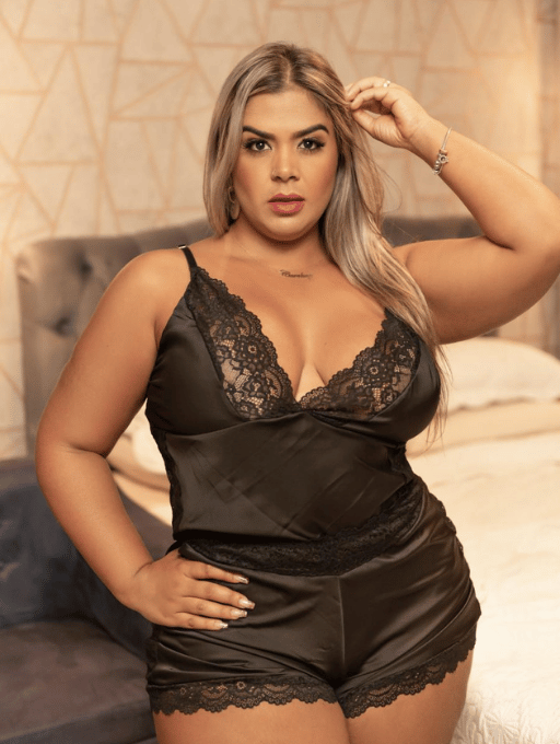 Pigiama corto in raso con pizzo anallergico, dal taglio morbido e raffinato.
